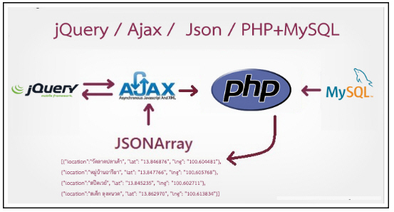 jQuery กับ Ajax อ่านข้อมูล Json จาก PHP/MySQL และการลูป $.each เพื่อแสดงค่า Json บทความนี้จะป็นเทคนิคการใช้ jQuery กับ Ajax ในการอ่านค่า Json จาก PHP/MySql Database ซึ่งเป็น Json ที่อยู่ในรูปแบบของ Json Object (Array) ซึ่งถูกส่งกลับมาด้วย Content-Type: application/json ทำให้ jQuery สามารถที่จะ $.each ค่าจาก Json ออกมาใช้งานได้เลย โดยไม่ต้องทำการแปลงหรือ Praser Json ซึ่งถือว่าสะดวกทั้งในการ รับ-ส่ง ข้อมูลระหว่างกัน