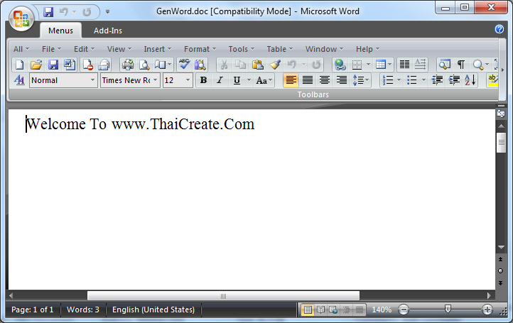 oWord.Selection.TypeText("Welcome To www.ThaiCreate.Com");