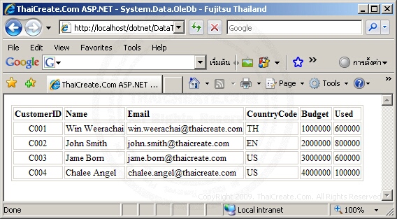 <title>ThaiCreate.Com ASP.NET - System.Data.OleDb</title>
