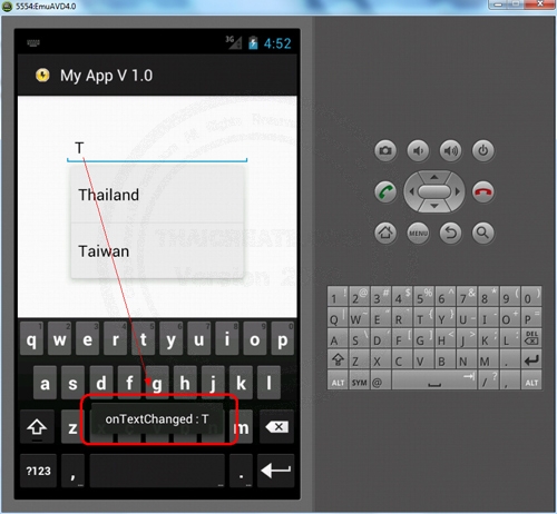 Example 2 การใช้ AutoCompleteTextView กับ Event ต่าง ๆ ของ AutoCompleteTextView