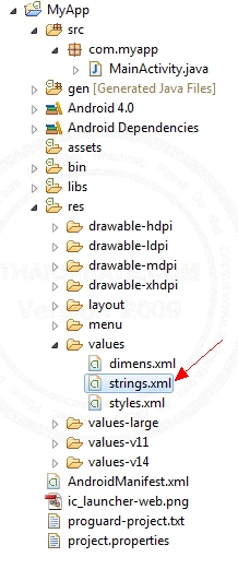 Example 3 การใช้ AutoCompleteTextView กับ ข้อมูลที่เป็น Array ที่อยู่ในไฟล์ strings.xml (/res/values/strings.xml)