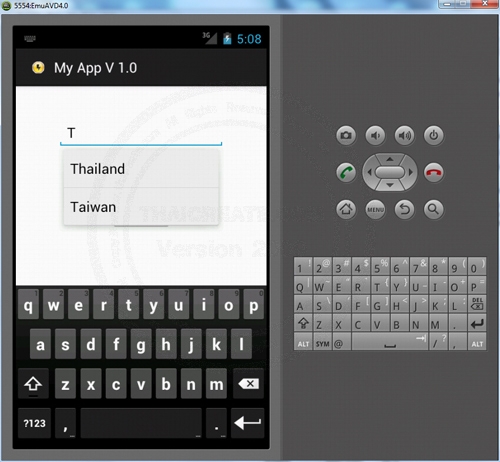 Example 4 การใช้ AutoCompleteTextView กับ ArrayList