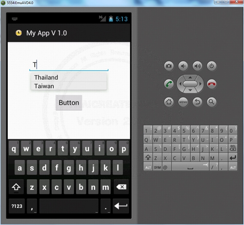 Example 1 การใช้ AutoCompleteTextView กับ String ที่เป็น Array