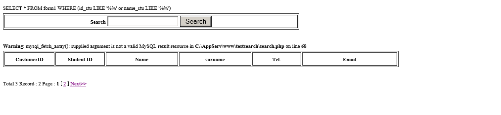 ช่วยด้วยครับ มันขึ้นว่า Warning: mysql_fetch_array(): supplied argument is not a valid MySQL result resource in |