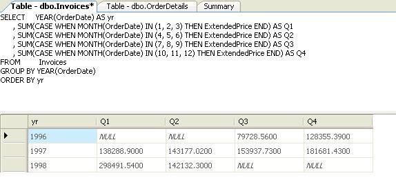 SQL อาจต้องเขียน SQL หลาย statement หรือต้องใช้ loop for เข้ามาช่วยเนื้อหาที่จะกล่าวต่อไปนี้ จะช่วยท่านที่ต้องการออก report ที่เกี่ยวข้องกับการ select ข้อมูล Datetime ที่ต้องการหาเป็น Weekly,Montly,Quarter หรือ Yearly ว่าเราสามารถ select ข้อมูลที่ต้องการเพียง SQL statement เดียว ข้อมูลที่นำมา show มาจาก database Northwind table,invoice และ orders ครับ