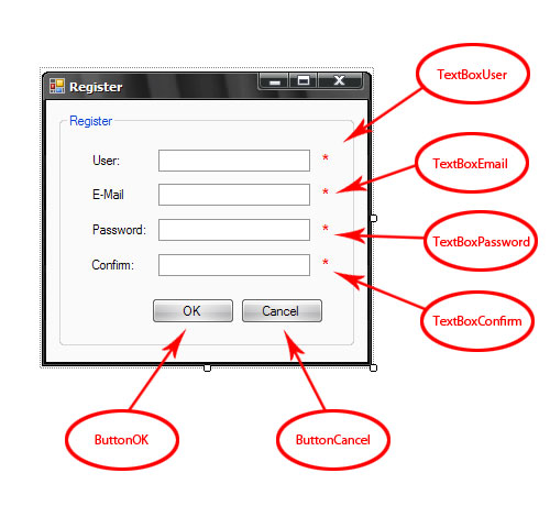 TextBoxConfirm.PasswordChar = '*'; //ทำให้ TextBoxConfirm เป็น Mode Password