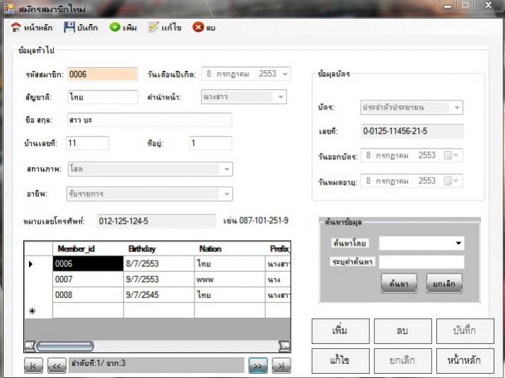 Dim sqlMember As String = "SELECT*FROM Member ORDER BY Member_id ASC" 'เรียกดูข้อมูลทั้งหมดจากตาราง student