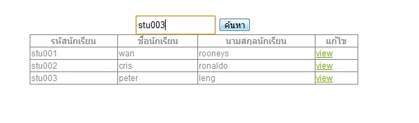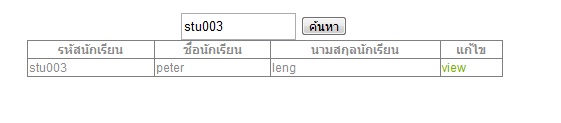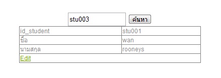ปัญหาคือว่าเมื่อผมsearch นักเรียนคนที่3 id stu003 search ได้ครับข้อมุลโชว แต่ทว่ากด edit ข้อมูลดันลิ้งไป นักเรียนคนแรก stu001