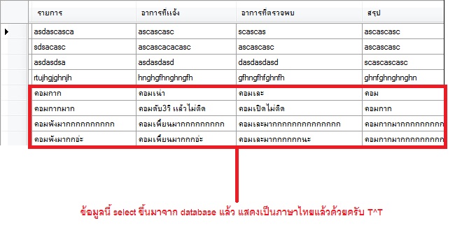 ผมเลยคิดว่าส่วนนี้รึปล่าวครับที่เป็นปัญหา โดยที่วงกลมสีแดงนั้นสามารถแสดงค่าที่เป็นภาษาไทยออกมาได้