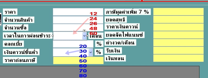 Function Caltotal_pay() As String Dim Total As String = "" Total = CStr(Val(txttotal_fn.Text)) + Val(txttotal_fn.Text) * Val(txtinterest.Text) * ((Val(txtrepayment.Text)) / Val(12)) / Val(txtrepayment.Text) Return Total End Function