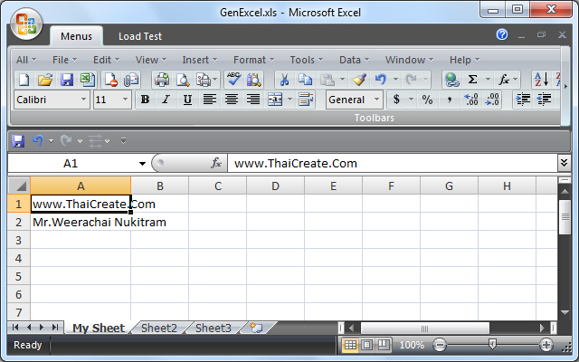 xlWorkSheet.Cells(1, 1) = "www.ThaiCreate.Com"