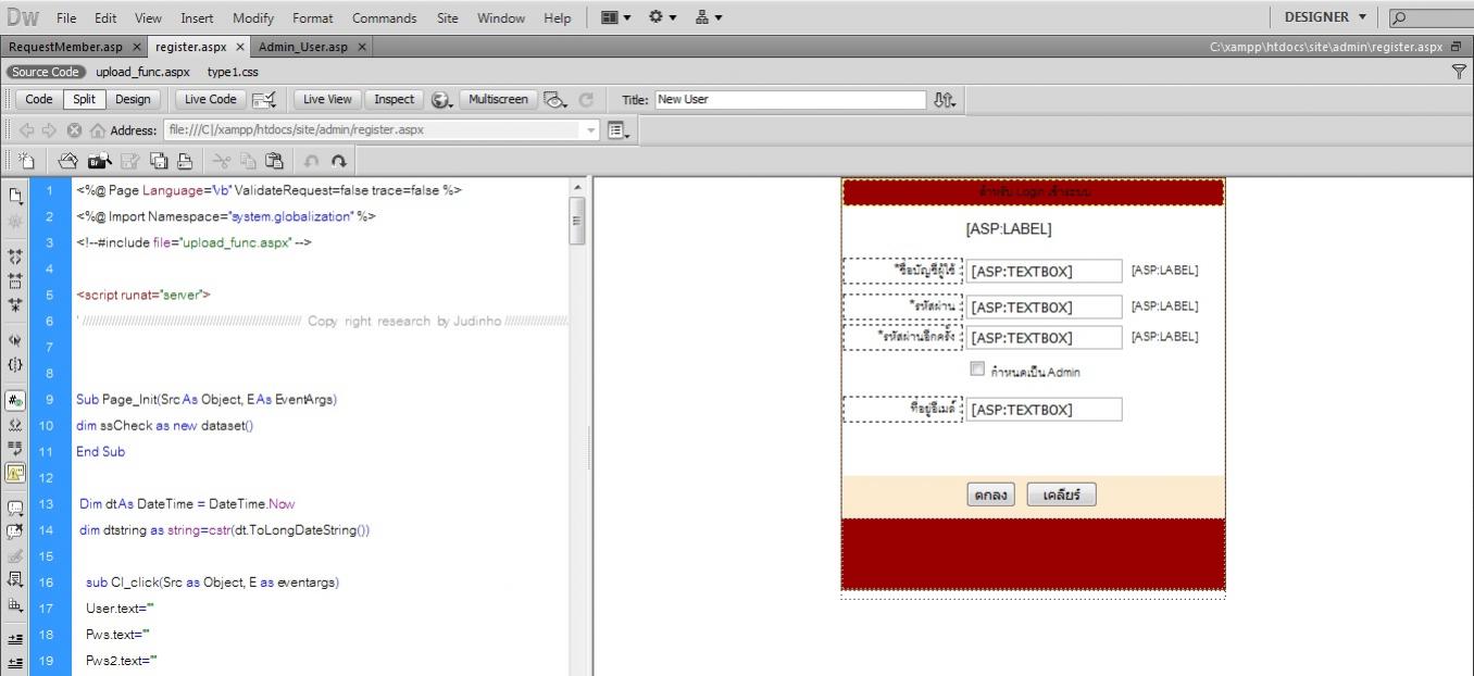 ผมมีหน้า register.aspx แต่ขาดไฟล์ 1 ไฟล์ ชื่อ upload_func.aspx ผมไม่ค่อยถนัด ASP เท่าไหร่นัก เลยต้องขอความช่วยเหลือครับ