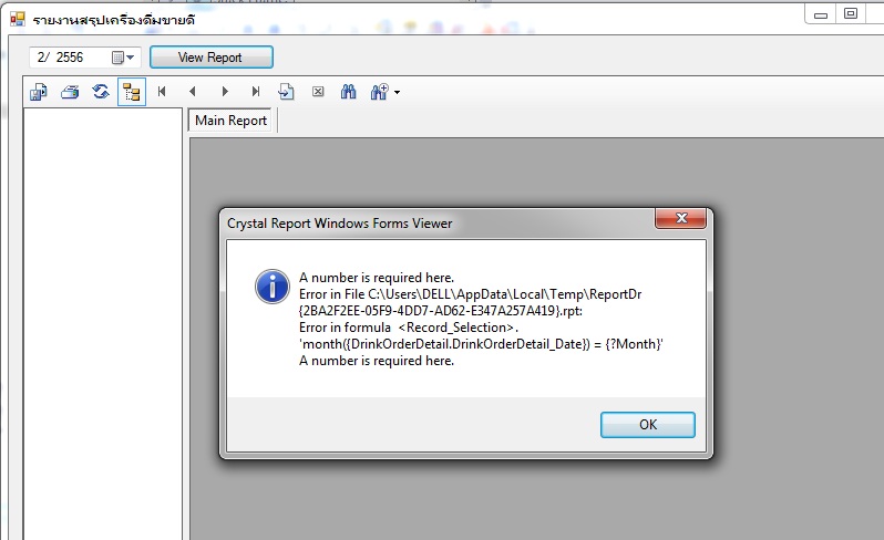 แก้ไขโดย ผมได้ใส่ {DrinkOrderDetail.DrinkOrderDetail_Date} = {?Month}) ใน Selection Formula