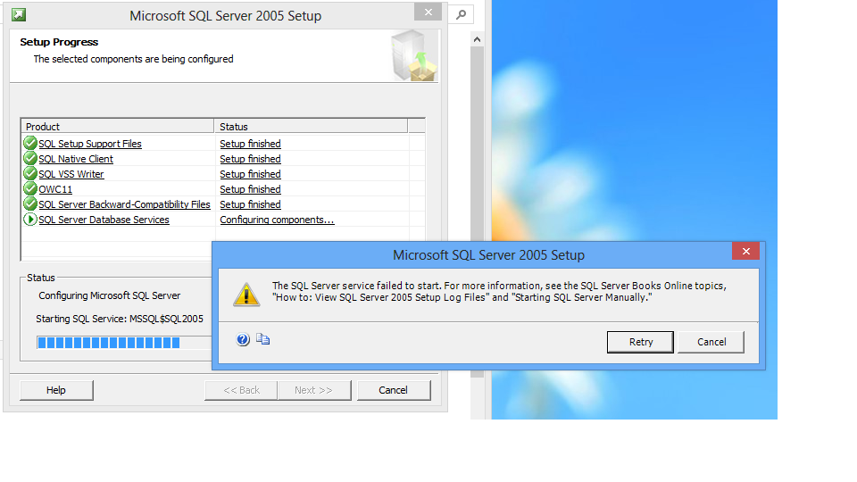 Re : มีปัญหาการติดตั้ง SQLSever 2005 แล้วError ช้วยหน่อยครับกูรู
