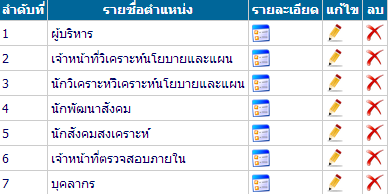<asp:GridView id="myGridView" PageSize="20" OnPageIndexChanging="ShowPageCommand" onRowDataBound="myGridView_RowDataBound" AutoGenerateColumns="False" AllowPaging="True" runat="server" BackColor="White" BorderColor="#CCCCCC" BorderStyle="None" BorderWidth="1px" CellPadding="3" style="text-align: center; font-size: small"> <FooterStyle BackColor="White" ForeColor="#000066" /> <HeaderStyle BackColor="#006699" Font-Bold="True" ForeColor="White"></HeaderStyle> <RowStyle HorizontalAlign="left" /> <AlternatingRowStyle HorizontalAlign="left" /> <Columns> <asp:TemplateField HeaderText="ลำดับที่"> <ItemTemplate> <asp:Label id="lblAgen" runat="server"></asp:Label> </ItemTemplate> </asp:TemplateField> <asp:TemplateField HeaderText="รายชื่อตำแหน่ง"> <ItemTemplate> <asp:Label id="lblName" runat="server"></asp:Label> </ItemTemplate> </asp:TemplateField> <asp:TemplateField HeaderText="รายละเอียด"> <ItemTemplate> <asp:HyperLink ID="hplDetail" runat="server"><img src="images/view_detailed.png" width="18" height="18"></asp:HyperLink> </ItemTemplate> </asp:TemplateField> <asp:TemplateField HeaderText="แก้ไข"> <ItemTemplate> <asp:HyperLink ID="hplEdit" runat="server"><img src="images/edit.png" width="18" height="18"></asp:HyperLink> </ItemTemplate> </asp:TemplateField> <asp:TemplateField HeaderText="ลบ"> <ItemTemplate> <asp:LinkButton id="LinkButton1" CommandName="Delete" runat="server"><img src="images/deletered.png" width="18" height="18"></asp:LinkButton> </ItemTemplate> </asp:TemplateField> </Columns>