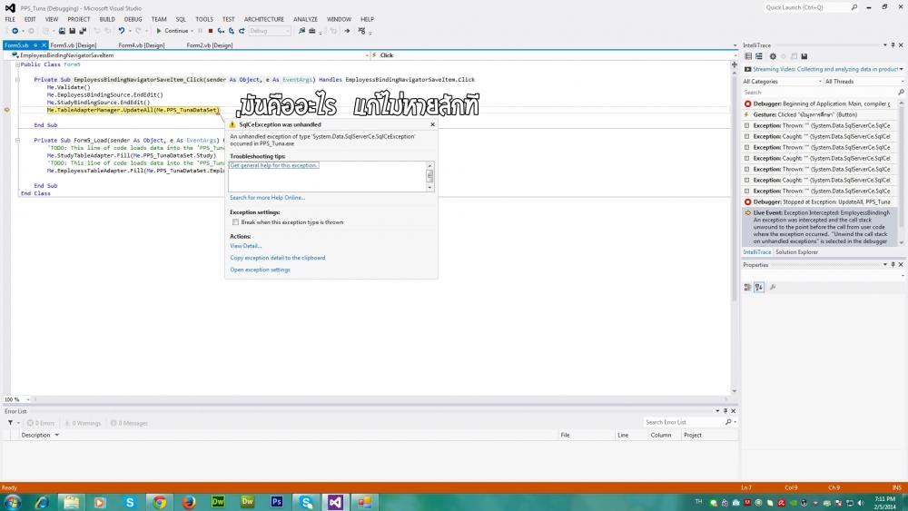 HOME > .NET Framework > Forum > ทำไม บันทึกข้อมูล ไม่ได้อ่ะครับ พอบันทึก ก็เด้งมาตรงโค้ดอันนี้