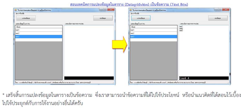 เทคนิคการแปลงข้อมูลในตาราง (Datagridview) เป็นข้อความ (Text Box) เป็นเทคนิคเล็กๆ ครับ