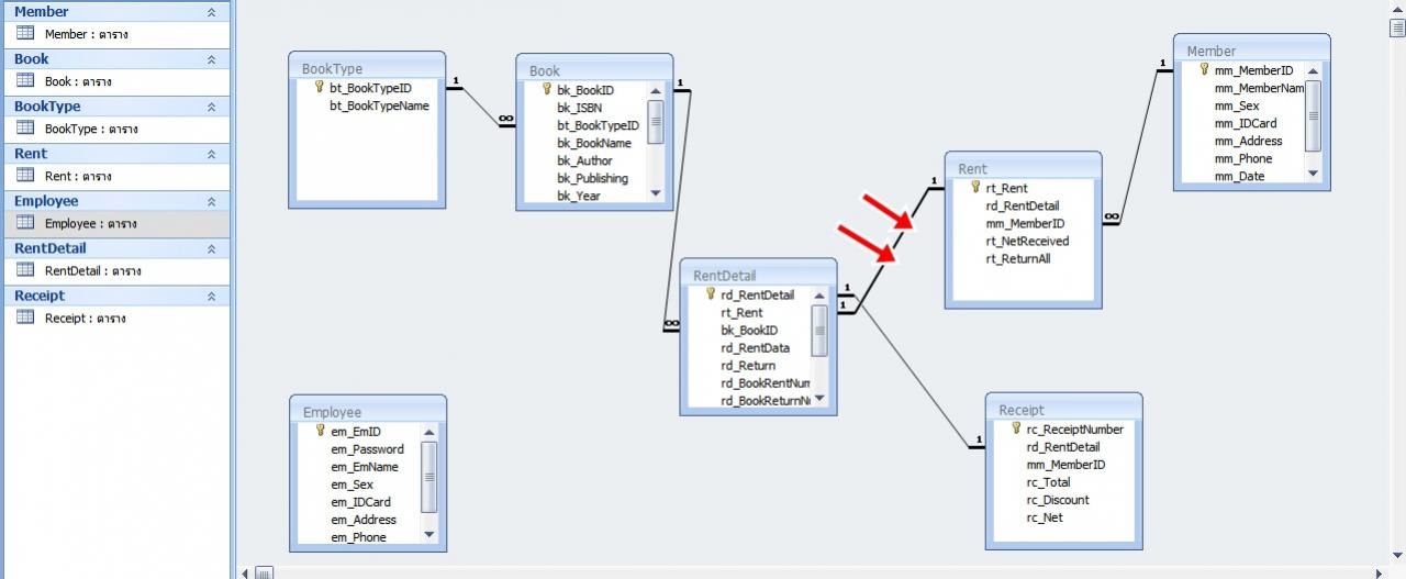 พอดีจะเชื่อความสัมพันธ์ใน Access2007 ติดอยู่ตรงตารางRent กับ ตารางRentDetail