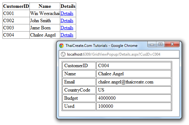 ASP.NET GridView Popup and jQuery Lightbox สร้าง Popup บน GridView