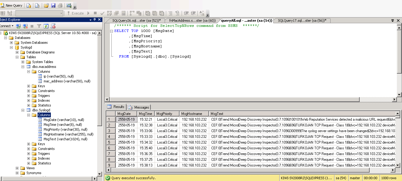 ที่อยู่ใน Syslogb column MsgText อะครับผม ค่า IP กับ MAC