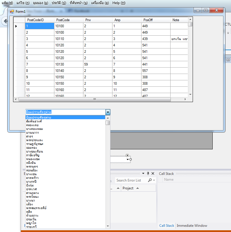 comboBox1.DataSource = TORServices.clsDatabase.GetTableForm("SELECT Amphur FROM Sett_Post_Amphur", TORServices.clsDatabase.EnumConnectionType.OLEDB);
