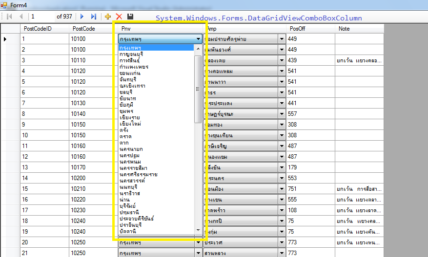 ประเด็นหลักคือ DataSource,DataPropertyName,DisplayMember ,ValueMember