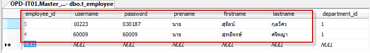 ส่วน username นี้มันอยู่ที่ table:t_employee ครับ