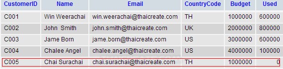 "(CustomerID,Name,Email,CountryCode,Budget,Used) " +