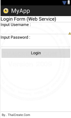 Screenshot Form Login ที่ทำงานอยู่บน Android กับ Web Service