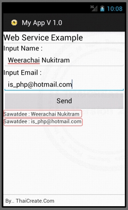 Android Web Service and JSON Parser บทความและตัวอย่าง Basic Web Service และทำความเข้าใจพื้นฐานการนำ JSON มาใช้งานรวมกับ Web Service ในการรับส่งค่า Resource จาก Web Service ที่มาพร้อมกับ JSON Code เหตุผลที่ใช้ JSON ก็คือเราสามารถนำ Result ที่ได้จาก Web Service ที่อยู่ในรูปแบบของ JSON ไปใช้ได้ง่ายและสะดวก โดยจะสะดวกในกรณีที่ข้อมูลนั้นเป็นชุดของ Array ซึ่งถ้าปกติเราจะต้องเขียน function สำหรับแปลงข้อความเหล่านั้นหรือตัดเอาในตำแหน่งต่าง ๆ ที่ต้องการ แต่ถ้าใช้ JSON เราเพียงส่งข้อความให้อยู่ในรุปแบบ Syntax ของ JSON จากนั้นใช้ function เพื่อ Decode ข้อความ JSON ได้ในทันที และอ่านค่าของชุด Array จาก Index ได้ทันที