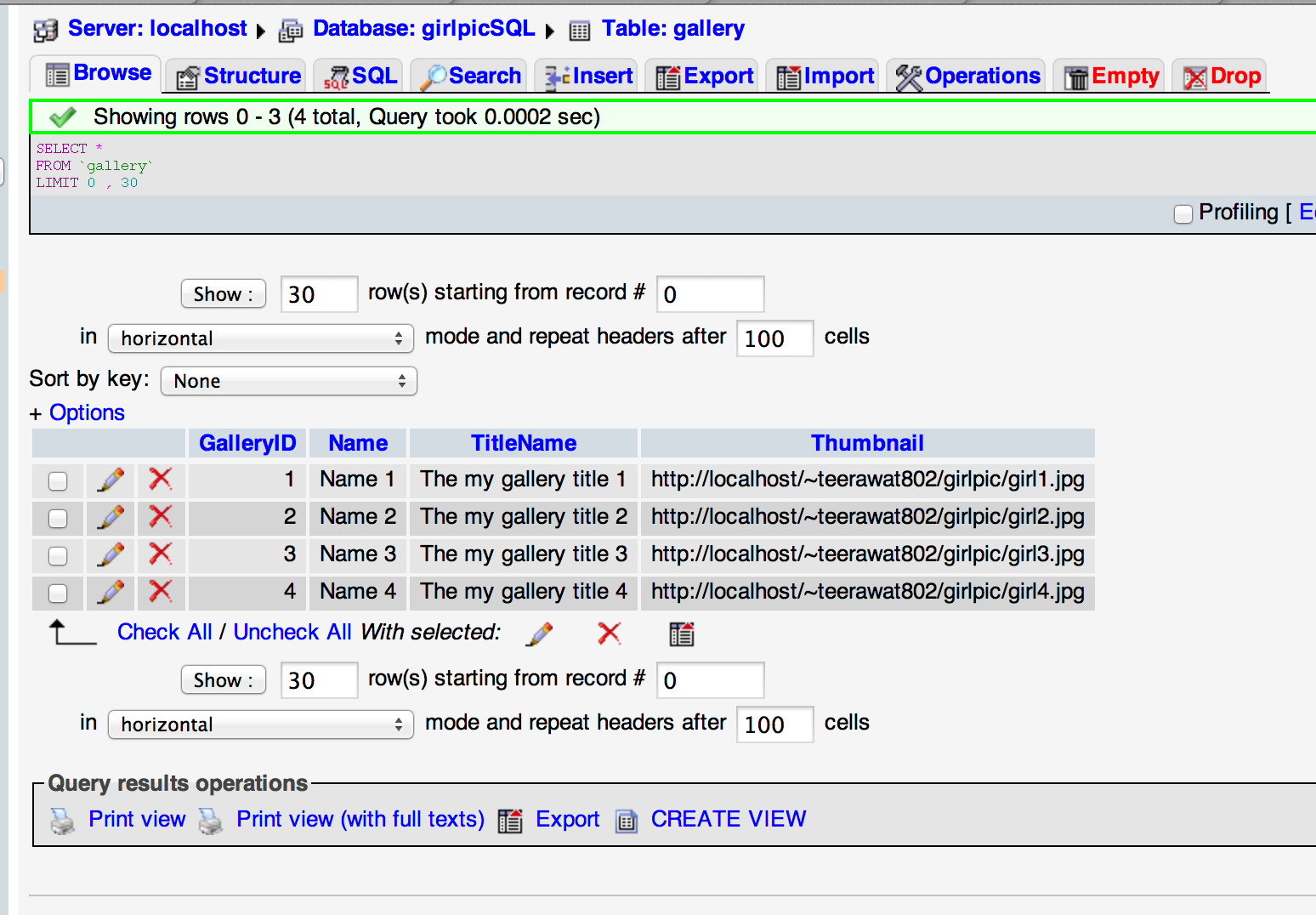 $strSQL = "SELECT * FROM gallery WHERE 1 ";