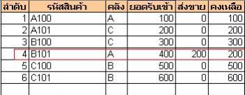 มีสินค้าอยู่ 6 ตัว มีคลังอยู่ 3 คลังคือ A, B, C