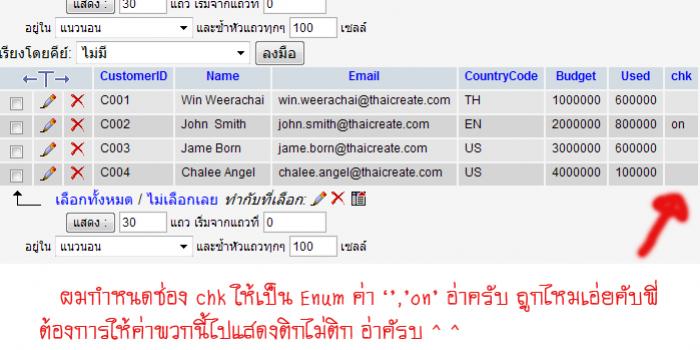 อันนี้ภาพ MY SQL ที่ผมสร้างขึ้นมารองรับ Check Box