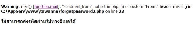 ช่วยแก้โค้ดให้หน่อยครับ Warning: mail() [function.mail]: "sendmail_form" not set in php.ini or custom "From:" header |