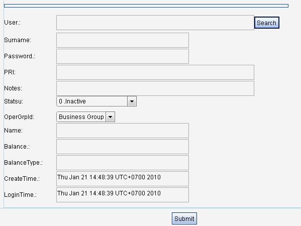 <?php $sql=mysql_query("select * from table_name where field_name like '$search' "); //or '%$search%' เลือกใช้ตามจุดประสงค์เลยครับ $res=mysql_fetch_assoc($sql)) ?> <input type="text" name='search' value='$search'><br> <input type="text" name='user' value='<?=$res[user]?>' ><br> <input type="text" name='password' value='<?=$res[password]?>' ><br> <input ype="text" name='PRI' value='<?=$res[pri]?>' ><br> ....
