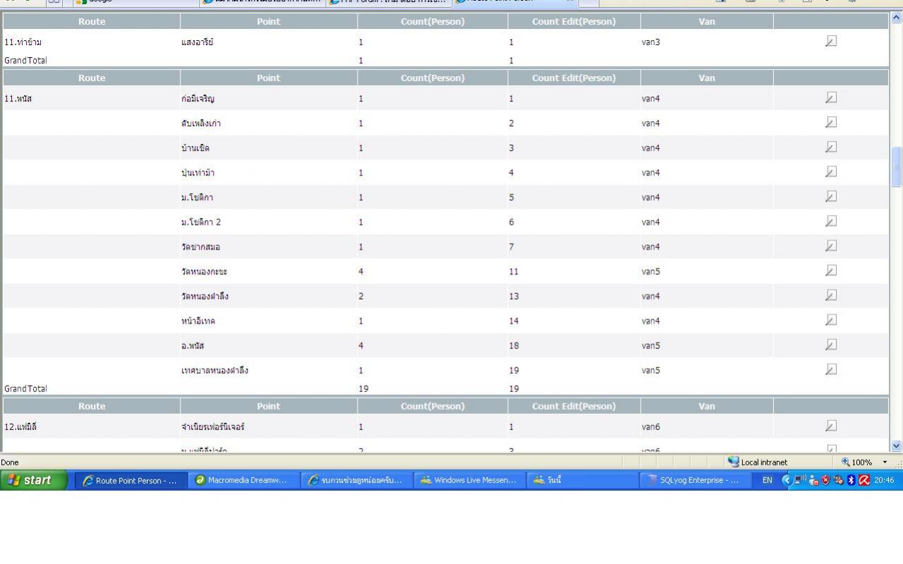 โดยขั้นแรก ผมจะดึงข้อมูลออกมาจาก ฐานข้อมูลโดยการ GROUP แต่ละ สาย ออกมา ซึ่งในที่นี้คือ ROUTE