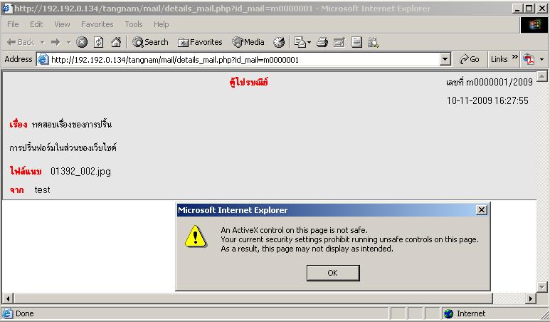 ตอนที่ทดสอบที่เครื่องตัวเองสามารถปริ้นได้ปกติ...แต่พอเอาโค๊ดไปไว้ที่เครื่อง server แล้วเวลากดปริ้นมันขึ้น error ตามรูปด้านล่าง