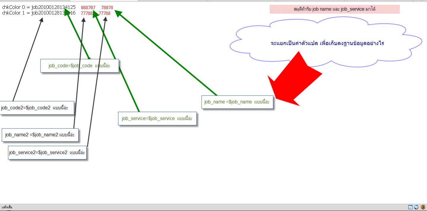ความจริงก็คือ จะดึงข้อมูล จากฐานข้อมูล tb_job แล้วทำ checkbox เพื่อ insert ไปลง ฐานข้อมูล tb_jb ค่ะ