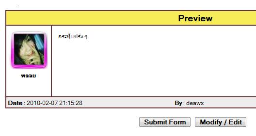 HOME > PHP > PHP Forum > กระทู้มันแปลก ๆ นาคุณวิน ผมลองทดสอบจะเพิ่มข้อมูล ไฉนรูปผมมันออกมาแบบนี้หว่า ครับท่าน