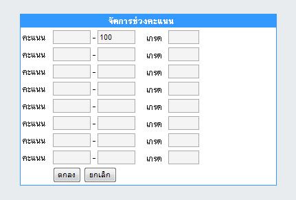 Re : สอบถามเรื่องการบันทึกคะแนนและเกรดลงฐานข้อมูลและการจัดการช่วงคะแนน