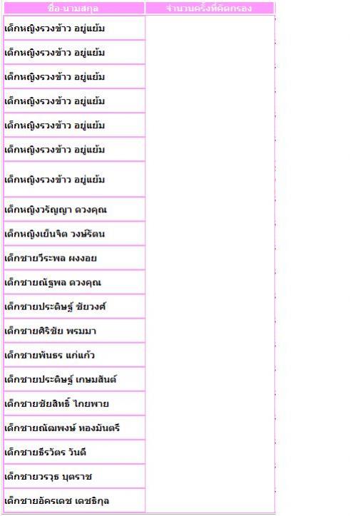 อยากทราบวิธีนับจำนวนข้อมูลที่ซ้ำกันค่ะ เช่นในฐานข้อมูลนี้มี เด็กหญิงรวงข้าว 5 แถว อยากให้เวลาดึงมาโชว์ในหน้าฟอร์มนั้น แสดงชื่อเด็กหญิง รวงข้าว ออก มาชื่อเดียว และมีคอลัมภ์บอกว่ามีชื่อนี้กี่ครั้ง ค่ะ