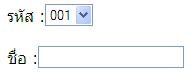 แต่ของผมที่ต้องการคือ เป็น drop-down list อันเดียว พอเลือกรหัส แล้วให้ชื่อ ไปแสดงเองใน Textarea อ่ะครับ ตามรูปที่แนบมาน่ะครับ มันต้องใช้หลักการเดียวกันหรือเปล่าครับ ผมไม่เคยเขียนน่ะครับ รบกวนช่วยแนะนำหน่อยครับ