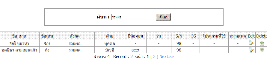 ฟอร์มค้นหาแบบเป็น textbox อันแรกผมทำได้แล้ว ซึ่งtextboxนี้ ค้นหาได้ 2 ฟิวล์ คือ ชื่อ และสังกัด แต่ผมอยากเพิ่มตัว listbox ให้สามารถกำหนดฟิวค้นหาได้ เช่นเลือกที่ชื่อ แล้วให้พิมชื่อที่ต้องการค้นหา เลือกมี่สังกัด ก็ให้พิมสังกัดที่ต้องการค้นหาครับ