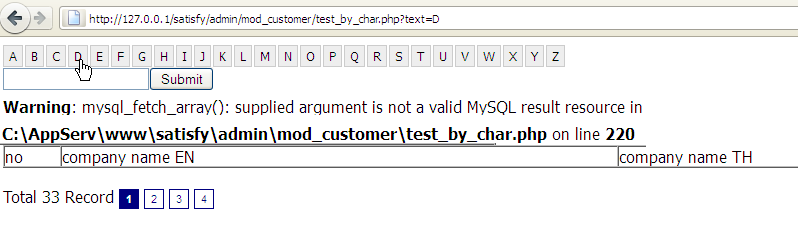 อันนี้คือแยกหน้าให้ แต่พอคลิกให้แสดงตามตัวอักษร มัน error ตามรูปแบบนี้ เวลา search ก็เป็นเหมือนกันครับ