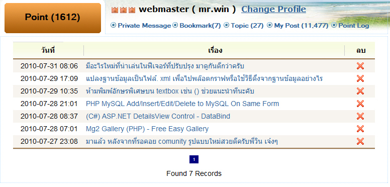 8.6 My Post รายการที่สมาชิกแสดงความคิดเห็นในกระทู้