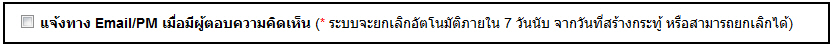 การตั้งกระทู้สามารถคลิกเลือก Option เพื่อให้ระบบแจ้งไปทางอีเมล์ กรณีที่มีการแสดงความคิดเห็นในกระทู้นั้น ๆ (ระบบนี้มีผลแค่ 7 วัน และจะมีการยกเลิกอัตโนมัติ)
