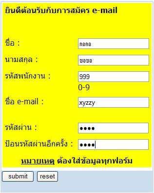 <h4>ยินดีต้อนรับกับการสมัคร e-mail<h4> <br/>