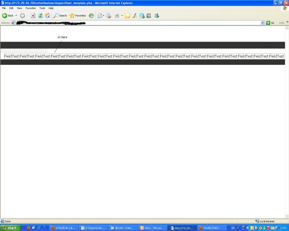 <font class="detailDesc"><font class="css_code"><style> *{ margin:0px; padding:0px; } body{ margin:0px; padding:0px; text-align:center; } #header{ width:100%; margin:0px; padding:0px; float:left; background: url('../images/bg/bg_whitegrey.jpg'); height: 71px; } #headmenu { float: left; width: 100%; height: 30px; background: #333333; margin:0px; padding:0px; } /* Contents Center */ #leftmenu{ display:inline; width:210px; height:100px; background:#f3f3f3; float:left; } #rightcontent{ display:inline; width:210px; background:#fff; float:left; } #footer{ clear:both; margin:0 auto; padding:0 auto; text-align:left; background: #333333; height: 24px; } </style> <body> <div id="wrapper"> <div id="header">Header</div> <div id="headmenu">Header Menu</div> <ul> <li id="leftmenu">sdaf</li> <li id="rightcontent"> <table border=1> <tr> <td> FieldTest </td> <td> FieldTest </td> <td> FieldTest </td> <td> FieldTest </td> <td> FieldTest </td> <td> FieldTest </td> <td> FieldTest </td> <td> FieldTest </td> <td> FieldTest </td> <td> FieldTest </td> <td> FieldTest </td> <td> FieldTest </td> <td> FieldTest </td> <td> FieldTest </td> <td> FieldTest </td> <td> FieldTest </td> <td> FieldTest </td> <td> FieldTest </td> </tr> </table> </li> </ul> </div> <div id="footer"></div> </body> </font></font>