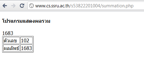ไฟล์ summation.php Link : www.cs.ssru.ac.th/s53822201004/summation.php