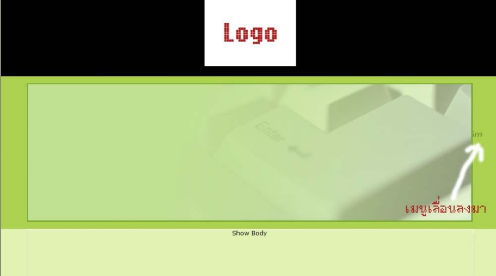 <div style="width:100%; height:auto; background: #acd14e;" align="center"> <!---------------------------------------------------------------------> <div id="header_pages"> <div id="header_content1" > <div id="logo"> </div><!--ปิด <div id="logo">--> <div> <ul id='menu'> <li class="button"><a class='current' href='http://' >Home</a></li> <li class="button"><a href='http://' >Products</a></li> <li class="button"><a href='http://' >Support</a></li> <li class="button"><a href='http://' >Contact</a></li> </ul> </div><!-- End of Nav Div --> </div><!--ปิด <div id="header_content1" align="left">--> </div><!--ปิด <div id="header_pages">--> <!---------------------------------------------------------------------> <div id="banner"> <div id="banner_content1"> </div><!--ปิด <div id="banner_content1">--> </div><!--ปิด <div id="banner">--> <!---------------------------------------------------------------------> <div id="web_content"> <div id="body1">Show Body </div> <!--ปิด <div id="body1">--> </div><!--ปิด <div id="web_content">--> <!---------------------------------------------------------------------> <div id="footer"> <div id="footer_content1"> </div><!--ปิด <div id="footer_content1">--> </div><!--ปิด <div id="footer">--> <!---------------------------------------------------------------------> </div><!--ปิด <div style="width:100%; height:auto;" align="center">-->